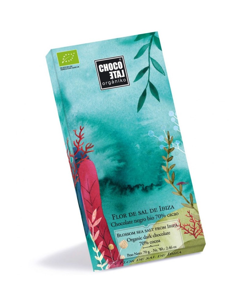 Chocolate ORGANIKO 70% Sal de Ibiza: cacao mínimo 70%. Tableta 70gr. De cultivo ecológico